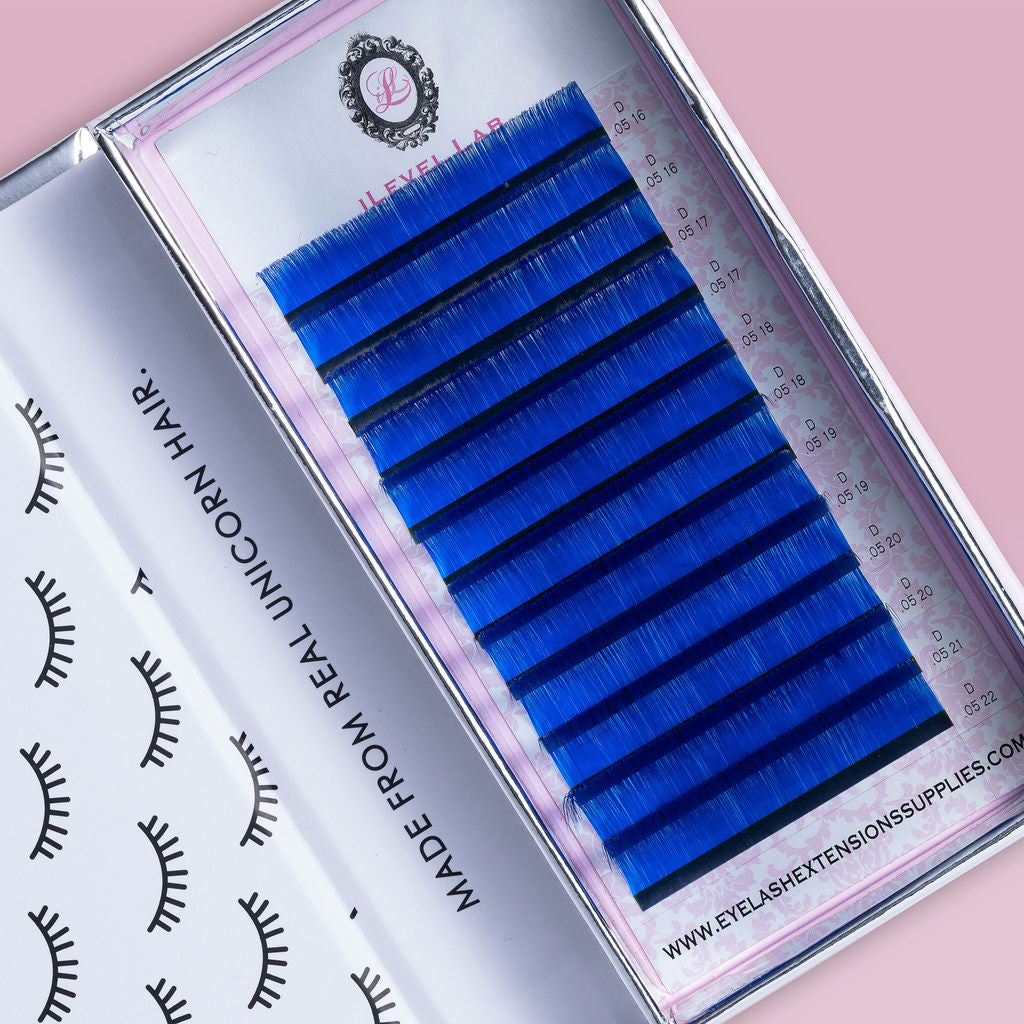 iLevel Lab Blue Color Lash Extensions are great for clients who want to experiment with different colors. Create full color sets or mix in with black lash extensions for a pop of color. Go as bold or as subtle as you like with our blue lashes for a fun, fashionable statement.