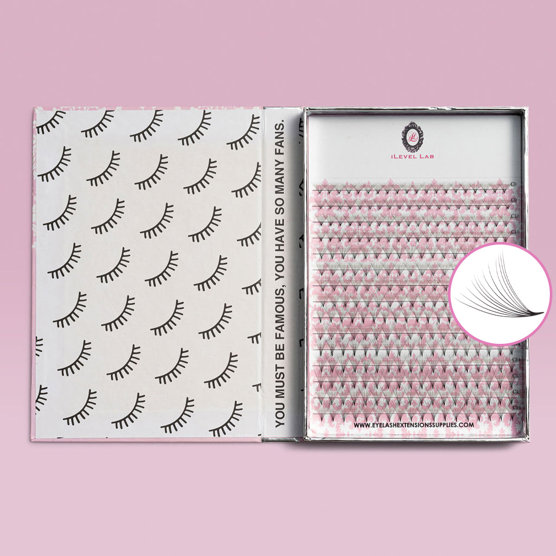 iLevel Lab Vegan12D Pro Made Volume Fans are hand made by our trained team of lash artists to ensure best quality. The fans are specially designed for beginners in volume, they are light and easy to use. Speed up your application process with Pro Made Fans- perfect for lash artist who haven't mastered creating volume fans by hand, or artists who want to serve more clients in a day. Made out of the softest fiber, the super thin bases will provide the best bond with the natural lashes, assuring the best retention and results. With 12D Pro Made Fans, applying lashes only takes half the time. With every lash you apply, you get the look of applying 12 lashes.