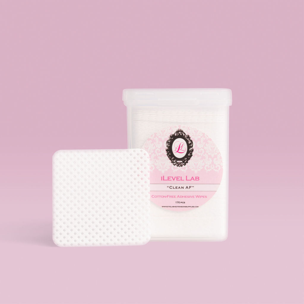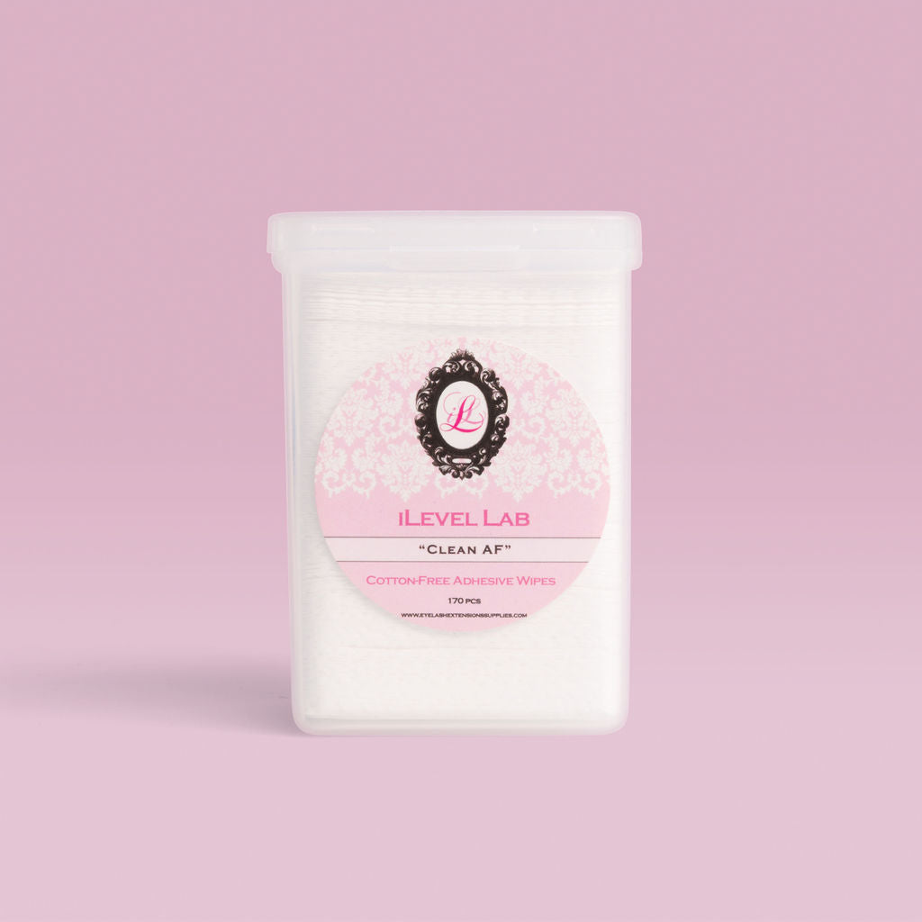 iLevel Lab Eyelash Extension Adhesive Wipes, "Clean AF" will clean your adhesive nozzle tip without the need for any additional cleaning supplies or solutions. Use "Clean AF" between each use of adhesive to prevent the cap from sticking to the nozzle. The wipes will not stick to the bottle or leave any residues behind. They are also perfect for cleaning tweezers, jade lash palettes, or any other surface with adhesive remover.