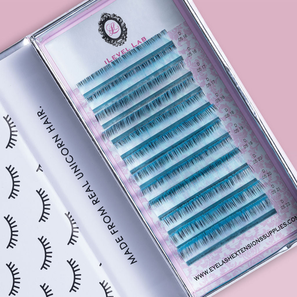 iLevel Lab Black Blue OMBRÉ Lash Extensions are great for clients who want to experiment with different colors. Create full color sets or mix in with black lash extensions for a pop of color. Go as bold or as subtle as you like with our blue lashes for a fun, fashionable statement.
