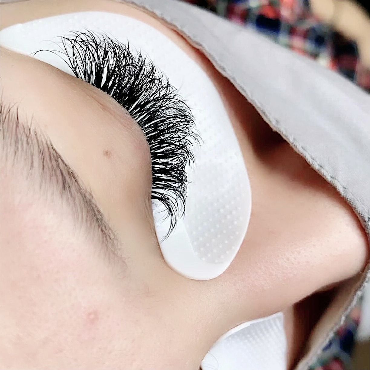 Remove the patch from the plastic liner. Apply the patch on clean face under the eyes, covering the bottom eyelashes during the eyelash extension application. Use medical tape to secure the edges of the patch. Remove the patch slowly from the edges.