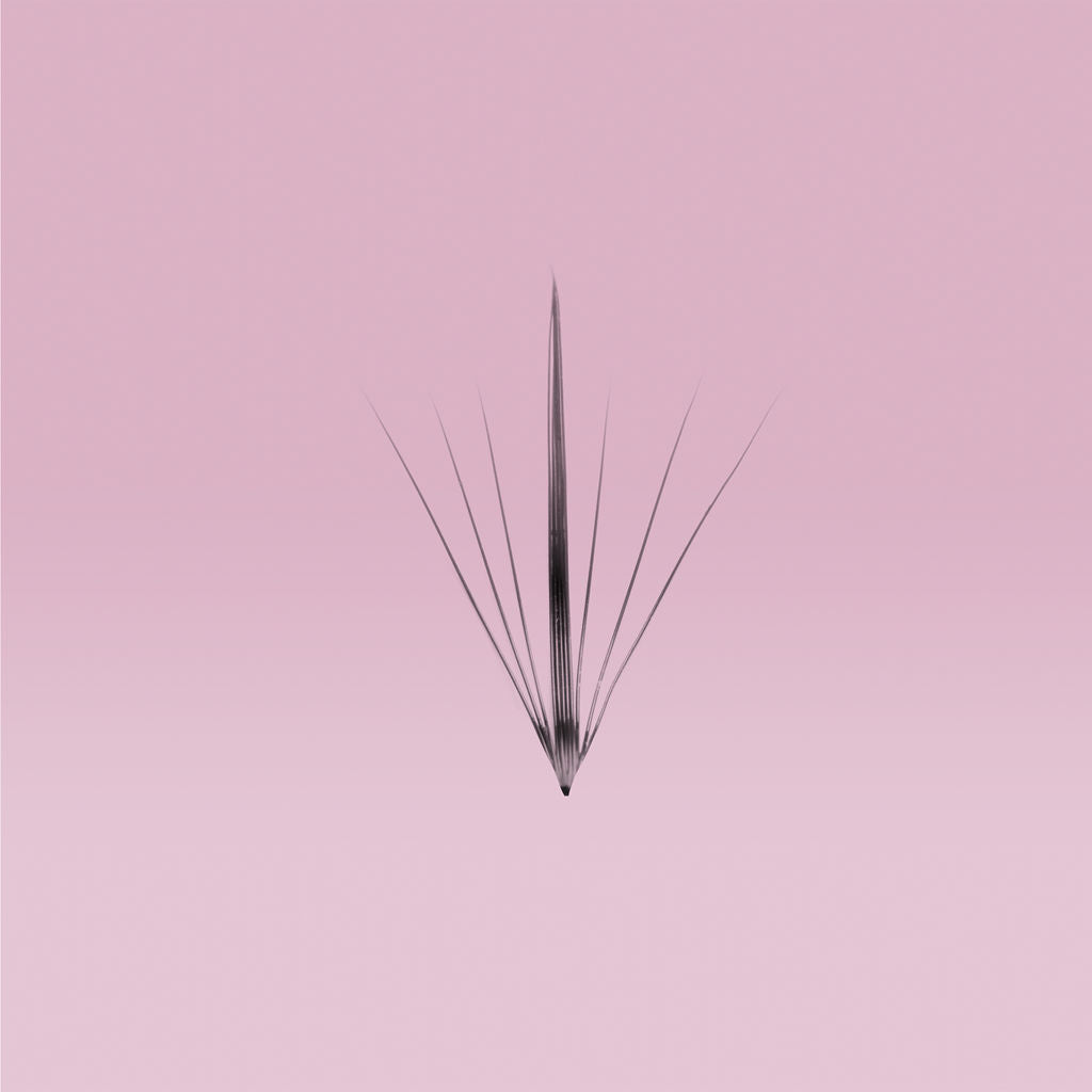 Each box comes with 400 fans, specially designed for beginners in volume. They are light, easy to use, and perfect for creating textured sets. Made out of the softest fiber, the super thin bases will provide the best bond with the natural lashes, assuring the best retention and results.