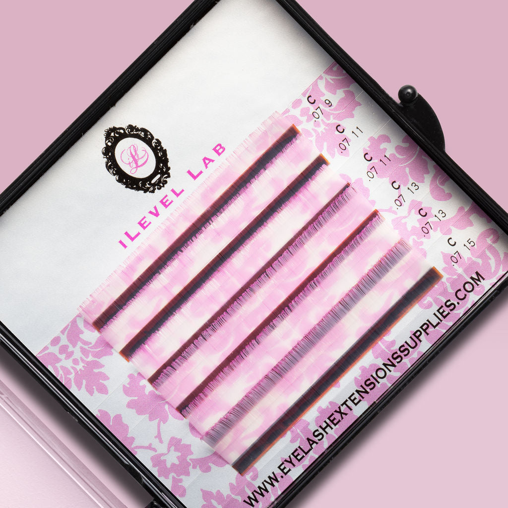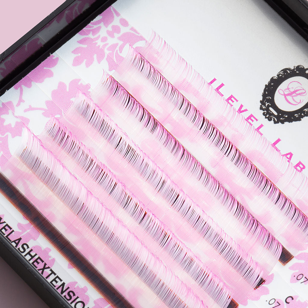 iLevel Lab White-Pink Ombré Lash Extensions are great for clients who want to add depth and detail to their lash sets. This frosty color adds dimension to any look! Create full color sets or mix in with black lash extensions for a pop of color. Go as bold or as subtle as you like with our white-pink lashes for a fun, fashionable statement. Offer your clients something new for their next fill or full set of colored lashes!