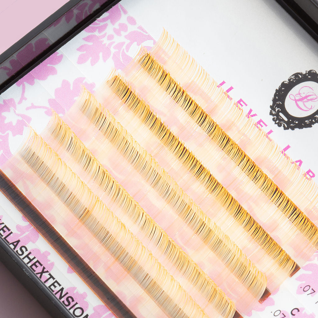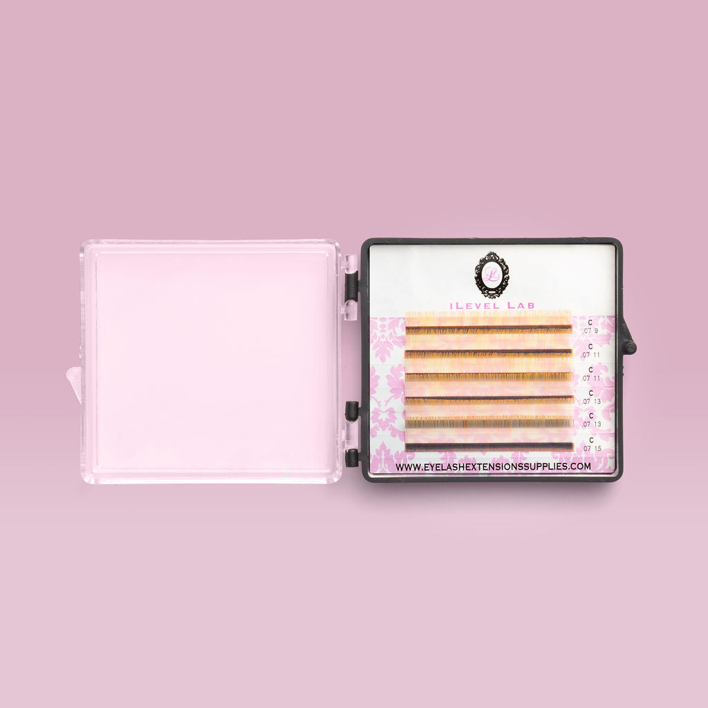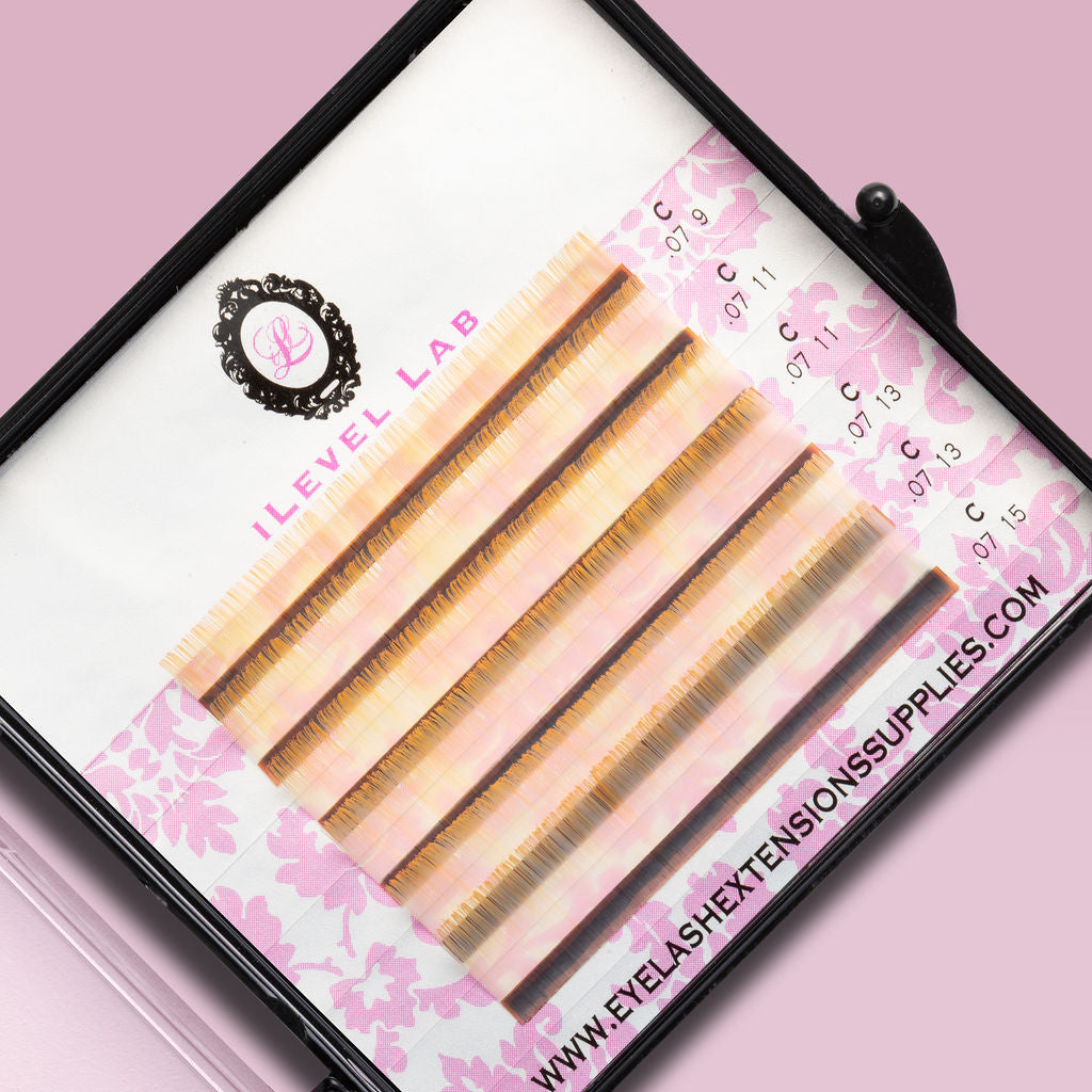 iLevel Lab White-Orange lash extensions are great for clients who want to add depth and detail to their lash sets. This frosty color adds dimension to any look! Create full color sets or mix in with black lash extensions for a pop of color. Go as bold or as subtle as you like with our white-orange lashes for a fun, fashionable statement. Offer your clients something new for their next fill or full set of colored lashes!