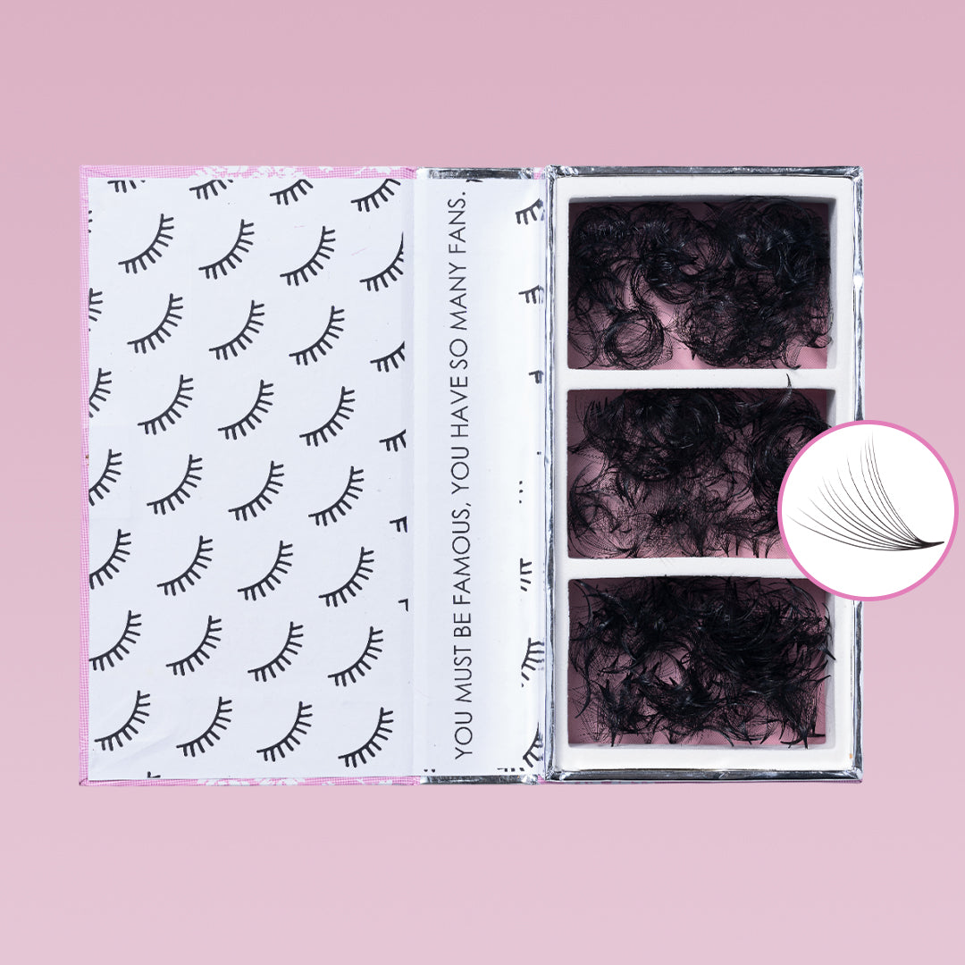 iLevel Lab Vegan 12D Pro Made Volume Fans are hand made by our trained team of lash artists to ensure best quality. The fans are specially designed for beginners in volume, they are light and easy to use. Speed up your application process with Pro Made Fans- perfect for lash artist who haven't mastered creating volume fans by hand, or artists who want to serve more clients in a day. Made out of the softest fiber, the super thin bases will provide the best bond with the natural lashes, assuring the best retention and results. With 12D Pro Made Fans, applying lashes only takes half the time. With every lash you apply, you get the look of applying 12 lashes.