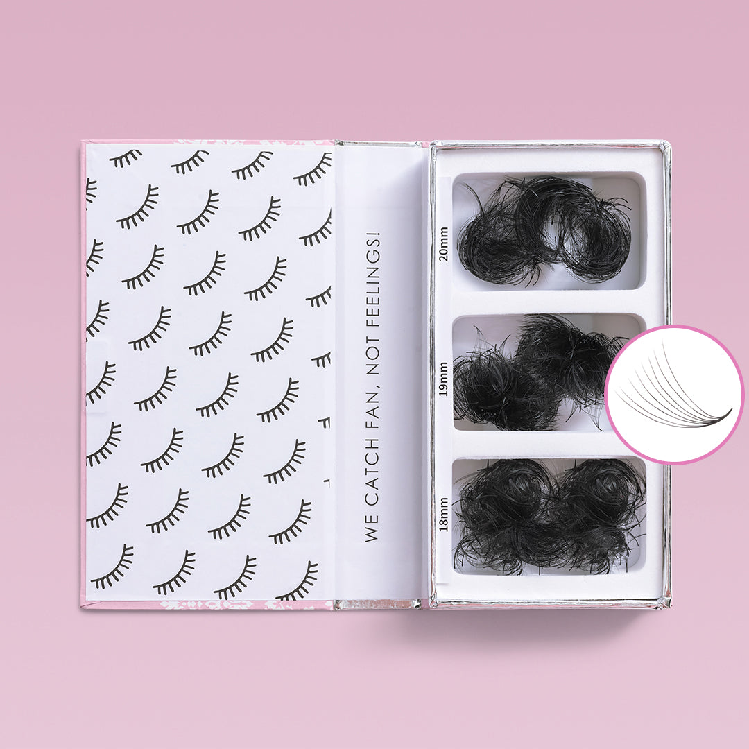 Our Pro Made Volume Fans are hand made by our trained team of lash artists to ensure best quality. Speed up your application process with Pro Made Fans- perfect for lash artist who haven't mastered creating volume fans by hand, or artists who want to serve more clients in a day. Made out of the softest fiber, the super thin bases will provide the best bond with the natural lashes, assuring the best retention and results. With 8D Pro Made Fans, applying lashes only takes half the time. With every lash you apply, you get the look of applying 8 lashes.