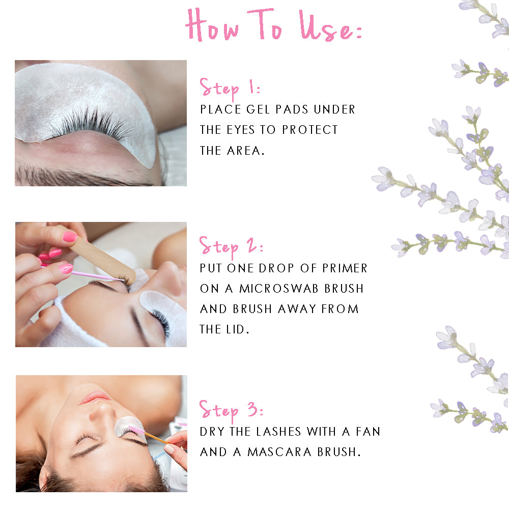 - Apply primer to lashes-- drying time is approximately 2 seconds.