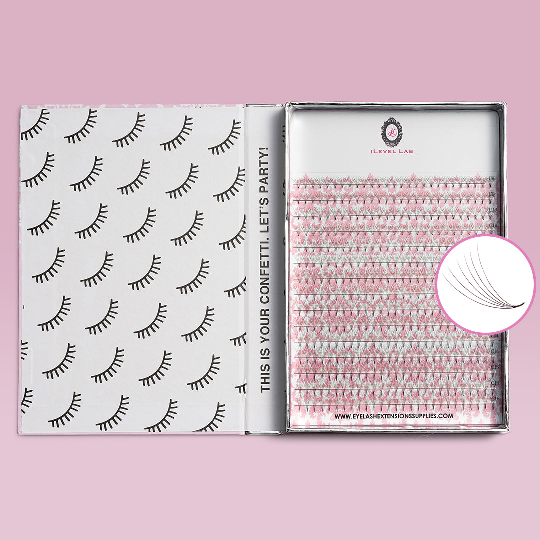iLevel Lab Vegan 6D PRO Made Volume Fans are HAND MADE and perfect for creating beautiful volume sets.Fans taped on trays contain approximately 405 fans.