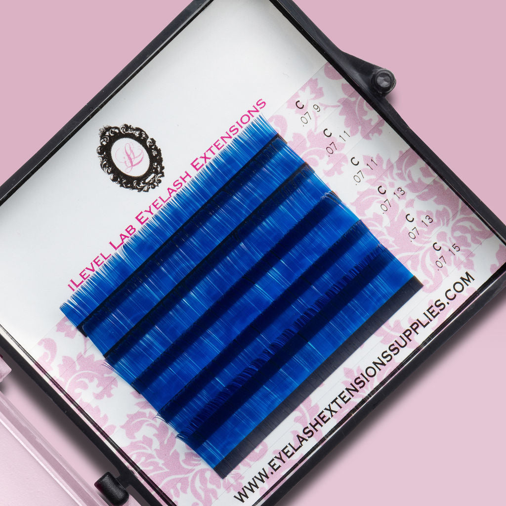 iLevel Lab Blue Color Lash Extensions are great for clients who want to experiment with different colors. Create full color sets or mix in with black lash extensions for a pop of color. Go as bold or as subtle as you like with our blue lashes for a fun, fashionable statement.