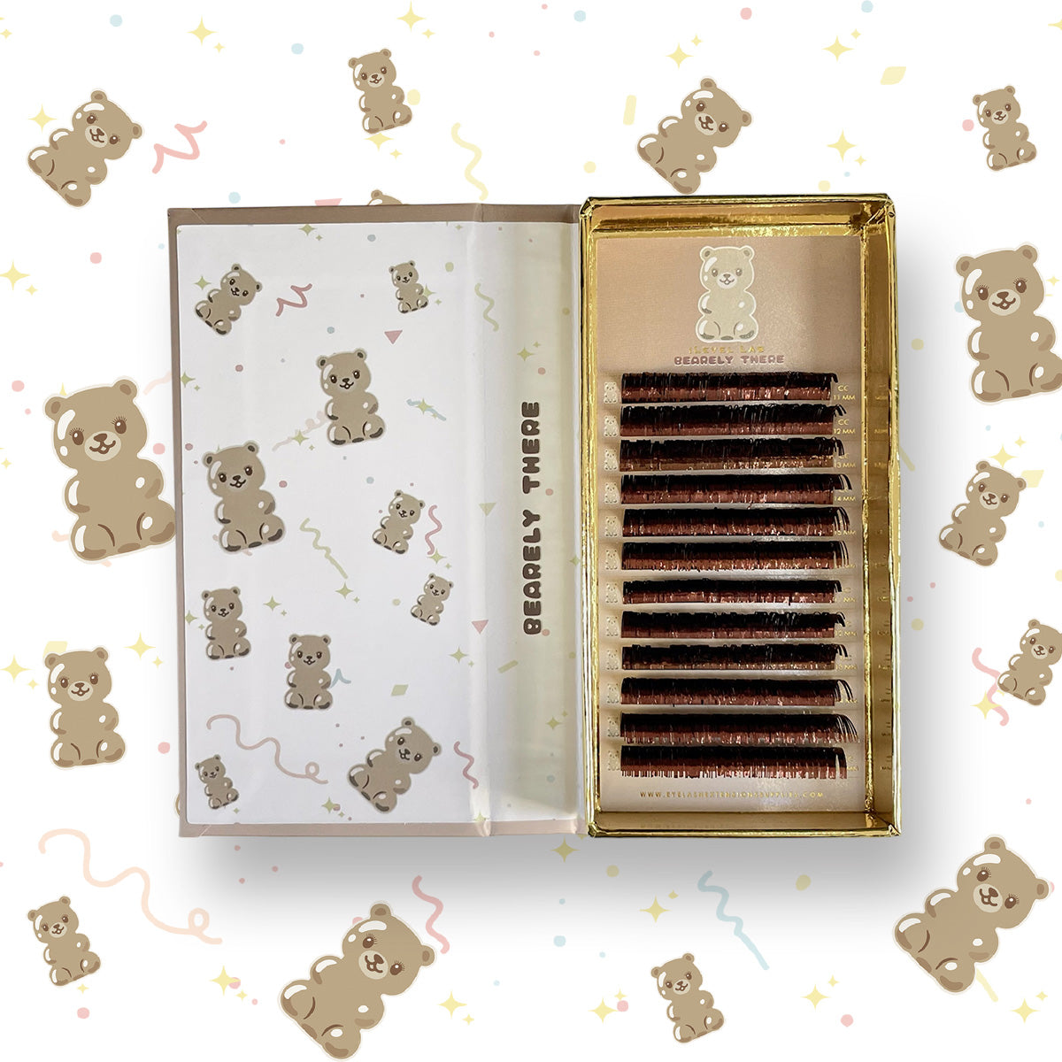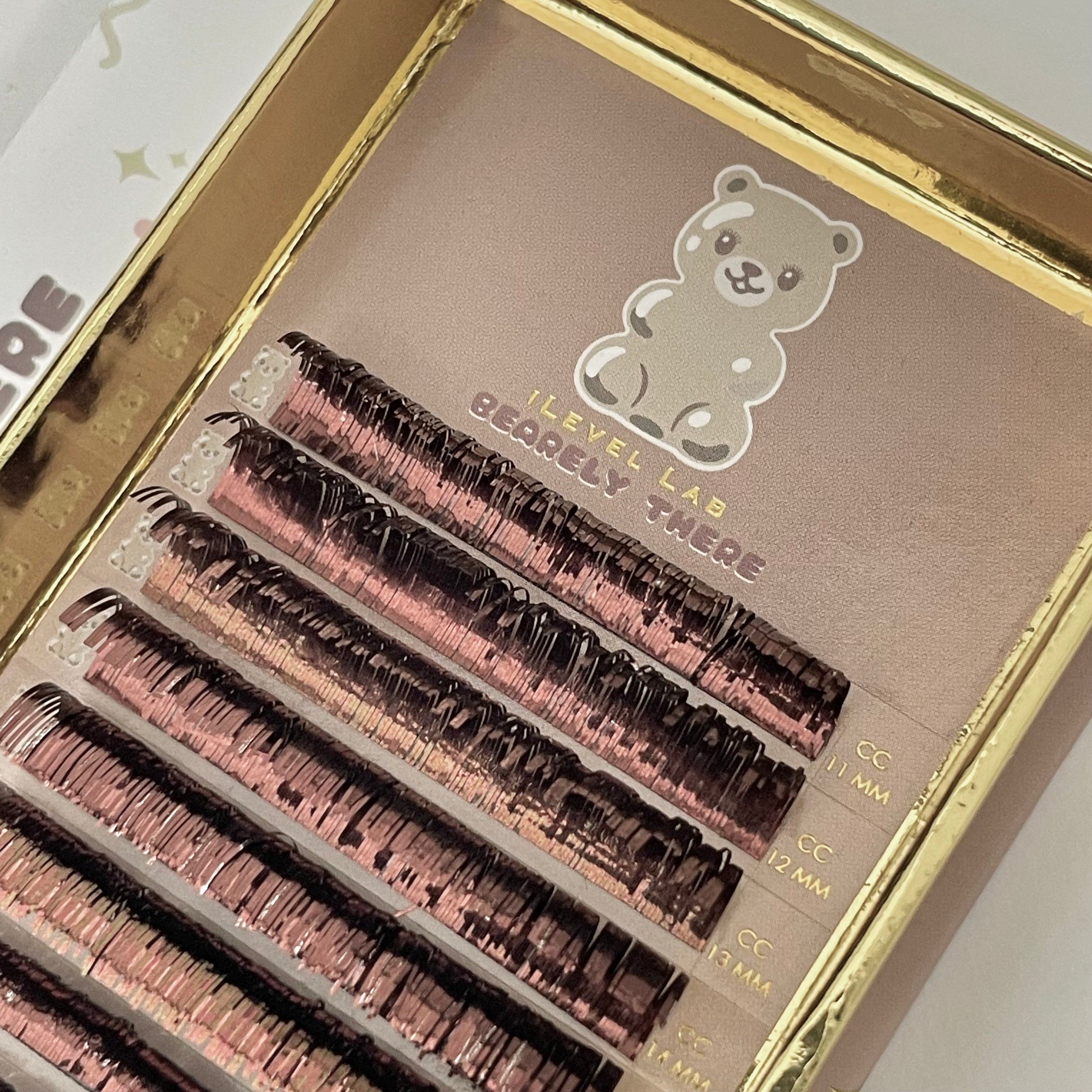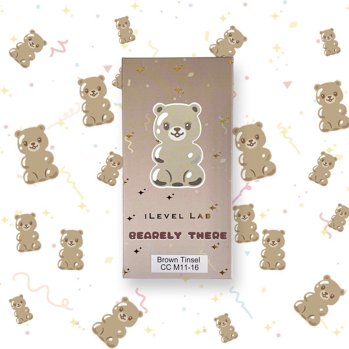 iLevel Lab Brown Tinsel lash extensions feature holographic, glittery strands that add a subtle yet eye-catching sparkle to any set. Made from lightweight reflective material, each tray includes 12 rows with lengths ranging from 11mm to 16mm. Available in CC+ curl, perfect for clients who love to shine.