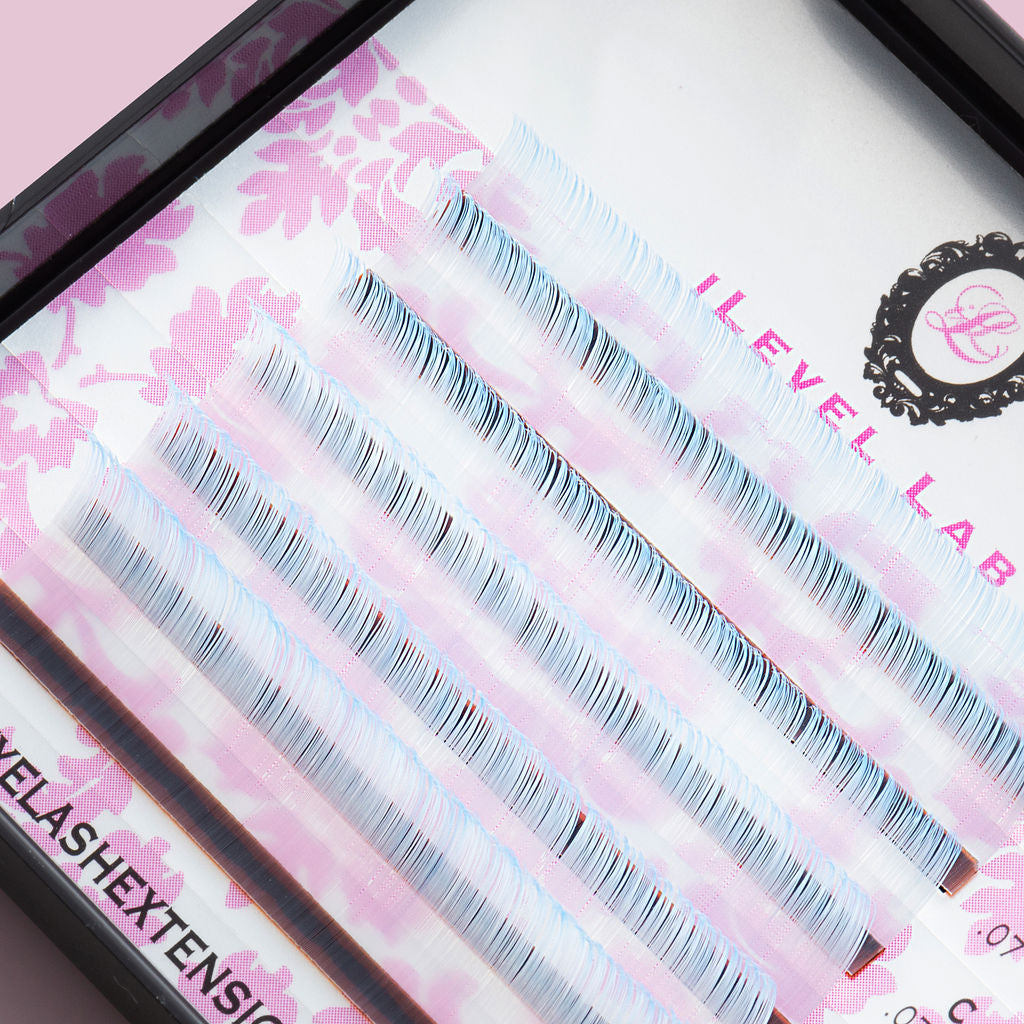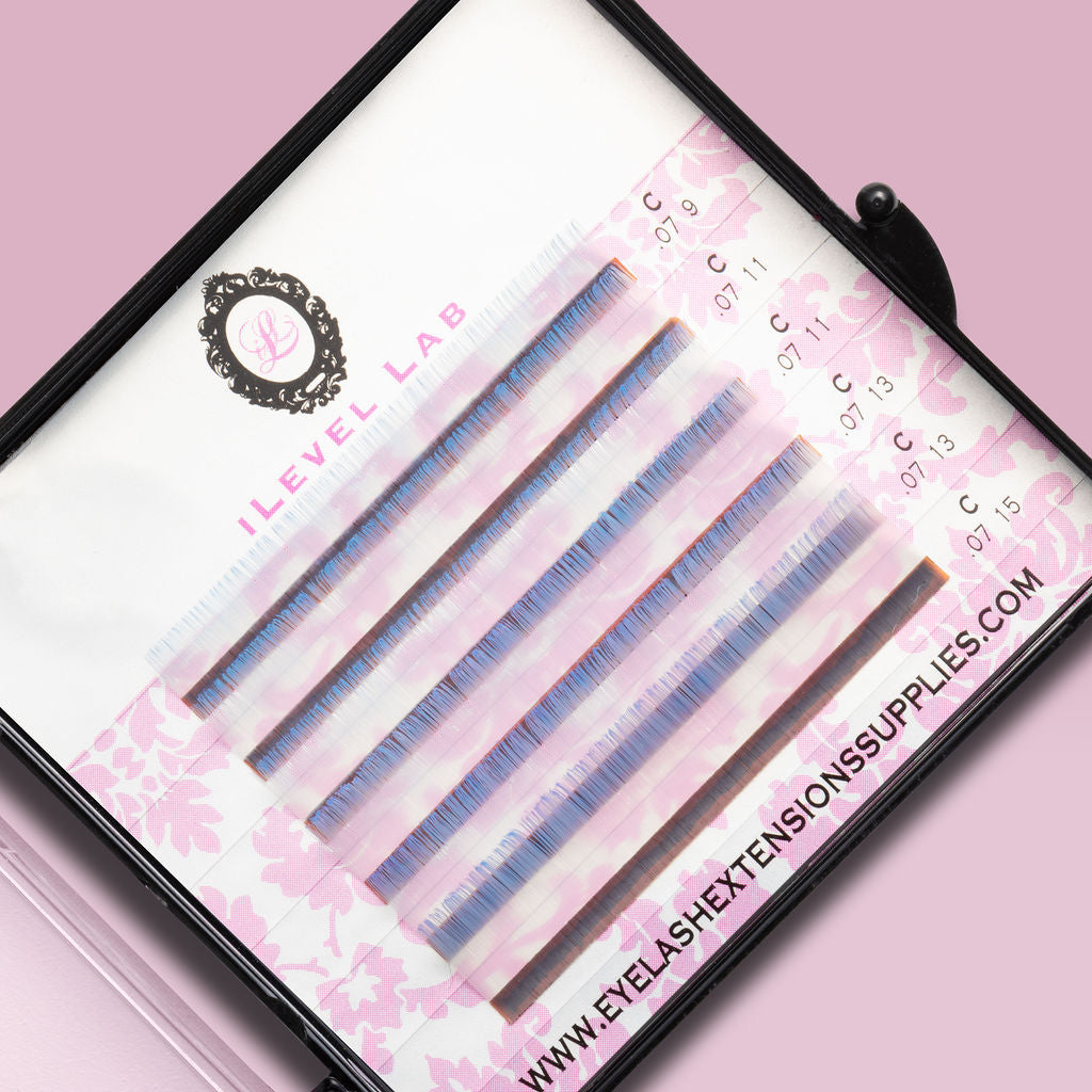 iLevel Lab White-Blue Lash Extensions are great for clients who want to add depth and detail to their lash sets. This frosty color adds dimension to any look! Create full color sets or mix in with black lash extensions for a pop of color. Go as bold or as subtle as you like with our white-blue lashes for a fun, fashionable statement. Offer your clients something new for their next fill or full set of colored lashes!