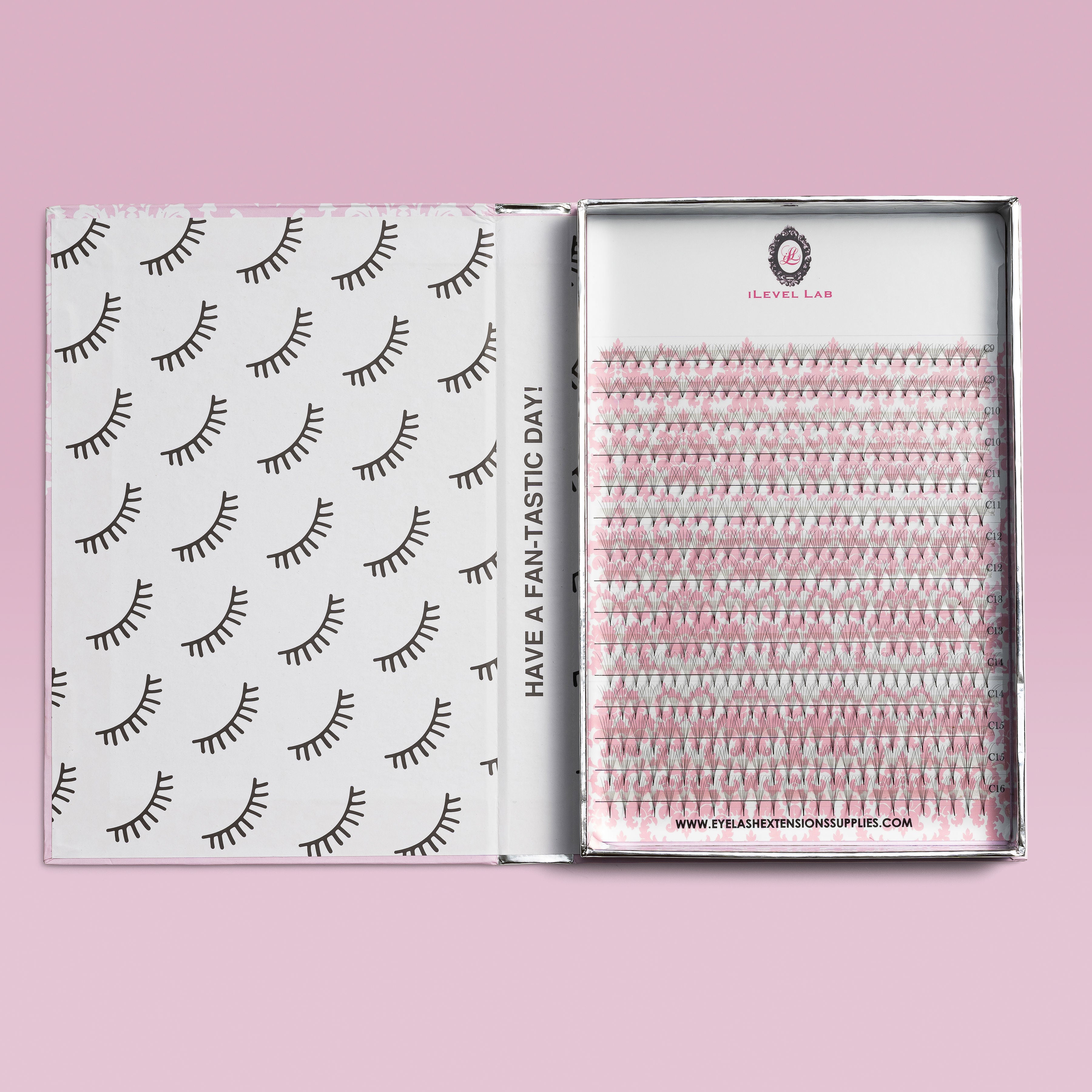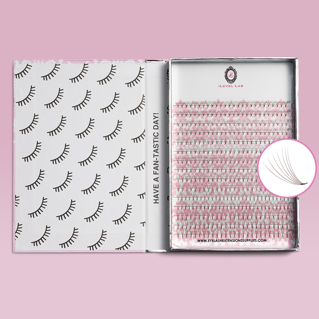 iLevel Lab Vegan 7D PRO Made Volume Fans are HAND MADE and perfect for creating beautiful volume sets. Fans taped on trays contain approximately 390 fans. Made out of the softest fiber, the super thin bases will provide the best bond with the natural lashes, assuring the best retention and results. With 7D Pro Made Fans, applying lashes only takes half the time. With every lash you apply, you get the look of applying 7 lashes.