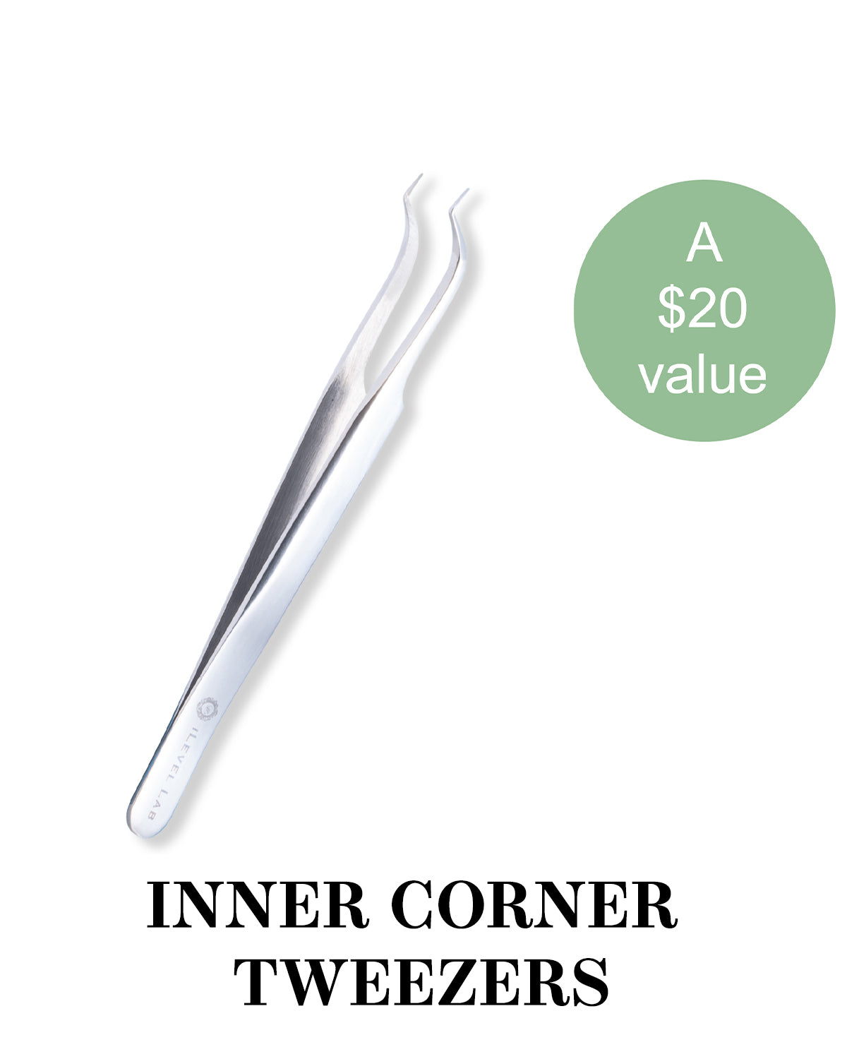 Inner Corner Lash Tweezers – designed specifically for applying the extensions on the inner and outer corners. The unique shape makes it easy to get into those “hard to lash” areas. $20 VALUE (***Based on availability)