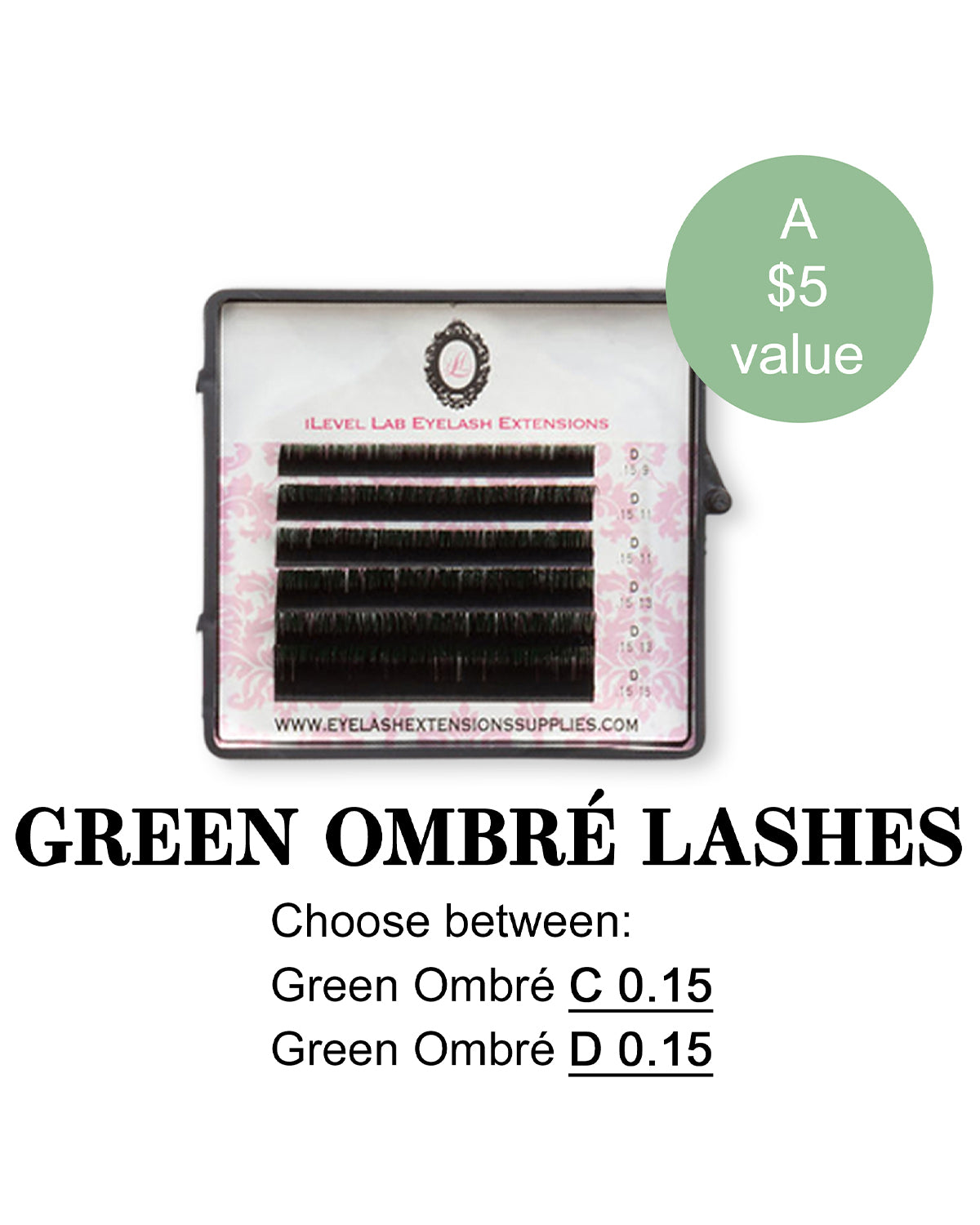 Includes Green Ombré Lashes D 0.15. $5 Value