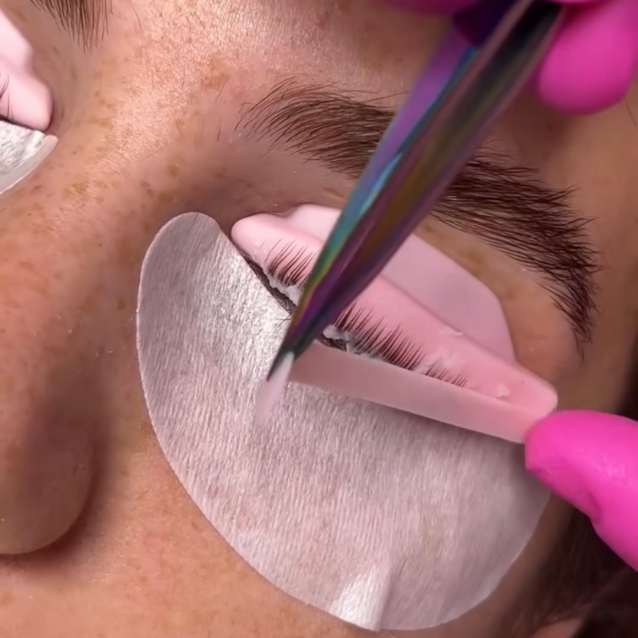 • Place the silicone lash lift ribbon over the lashes to ensure they stay in position during step 2 of the lash lift process.