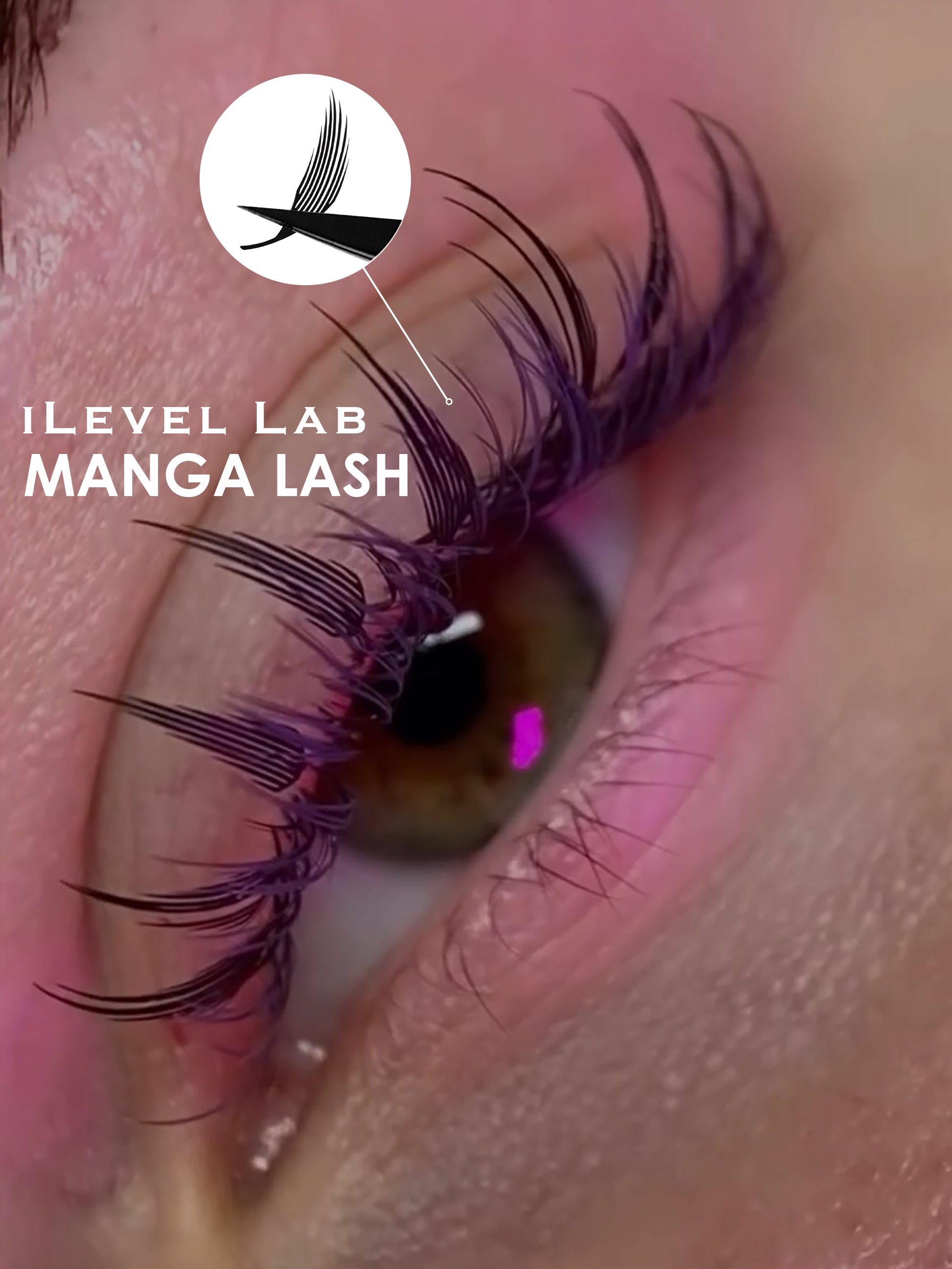 iLevel Lab Manga Lashes designed for bold, animated lash styles seen in manga and anime art. Each fan features a sharp, point focused design with tightly grouped fibers that rise into clean, tapered tips. This structured shape creates instant definition, making it easy to build spiked, dramatic "strip lash look" and achieve "kim k lash map".