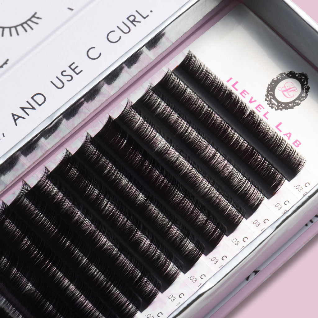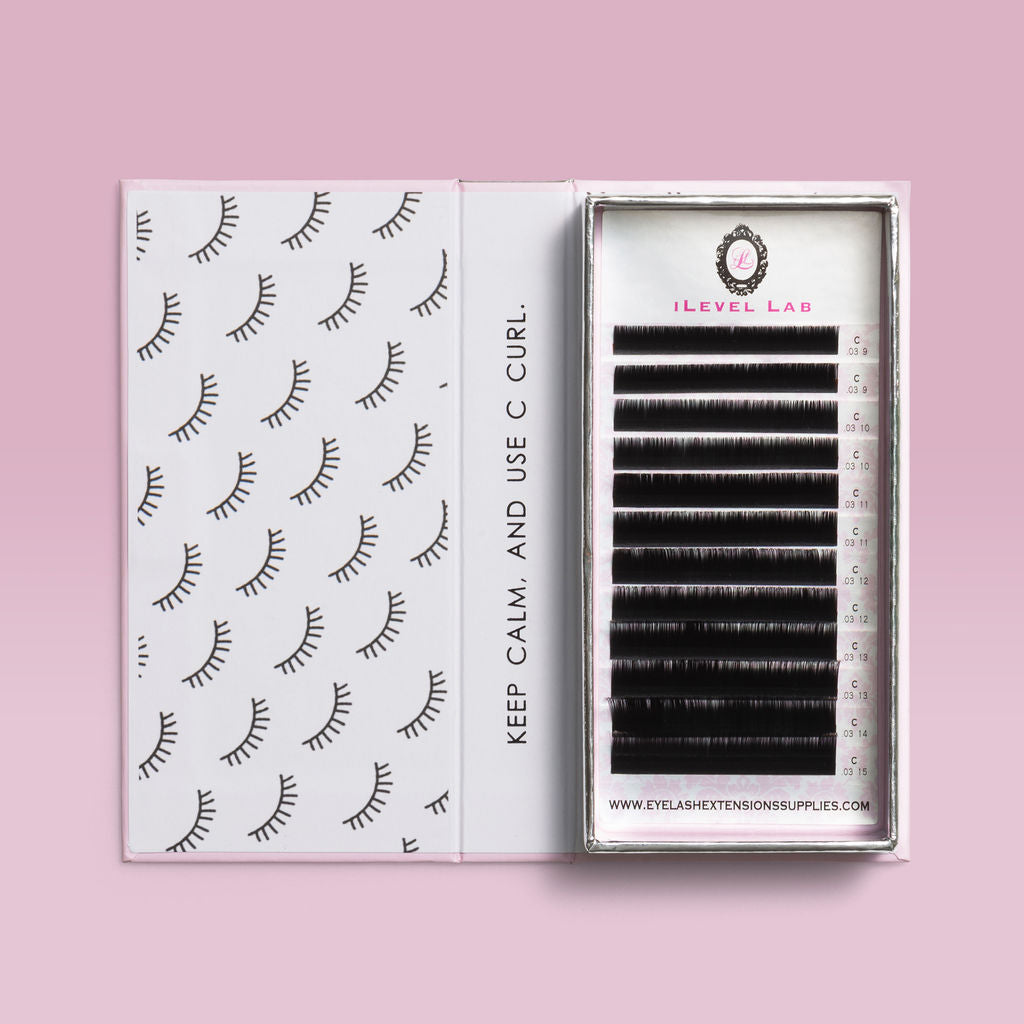 iLevel Lab VEGAN Eyelash Extensions in C Curl are made from soft poly fiber. Each row comes on an individual sticker for easier use and application, apply the row on your desired work area, work efficiently, work faster. C curl is the most popular curl for lash extensions. It is most flattering and fits most eye shapes perfectly.